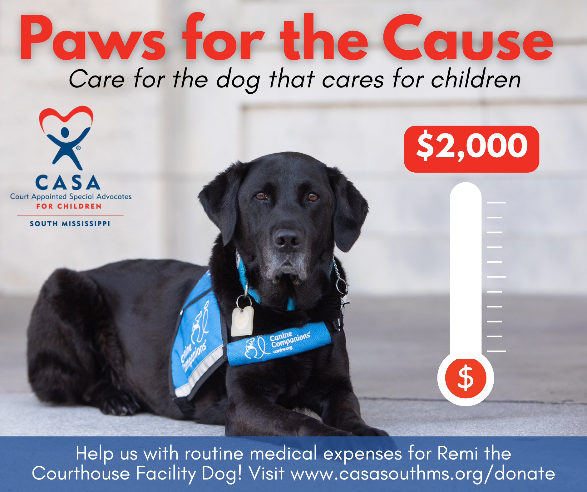 The Courthouse Facility Dog Team is supported by The Gulf Coast Community Foundation through the Jack A. & Gertrude W. Wilson Animal Welfare Fund, The Rotary Club of Bay St. Louis, and Mississippi Power. Remi’s medical care is generously donated by Dr. West of Pet Haven Veterinary Hospital